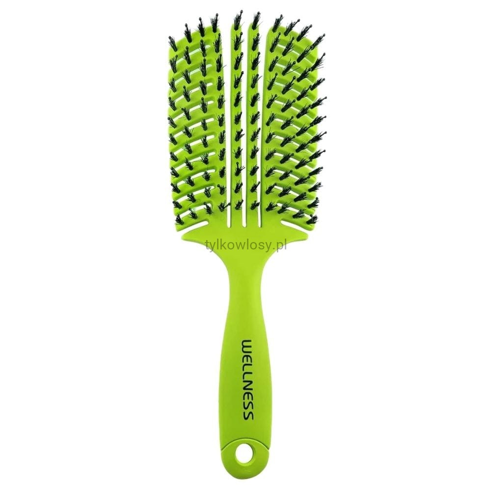 Wellness Large szczotka do włosów płaska zielona – duża szczotka do rozczesywania włosów idealnie sprawdzi się w przypadku długich, grubych i opornych pasm.
